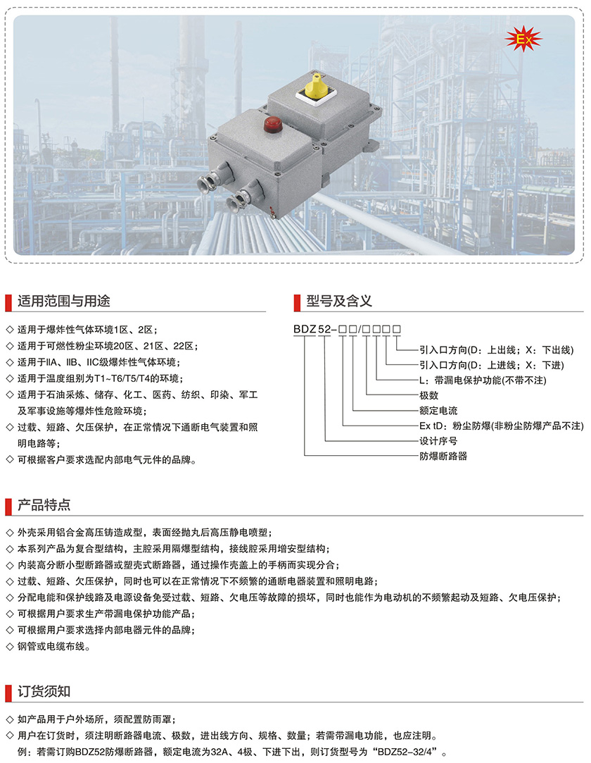BDz52系列防爆断路器(IIB、IIC、Ex tD)