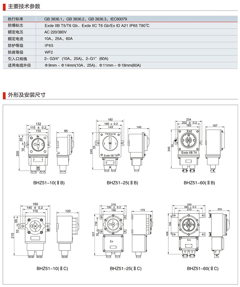 BDz52系列防爆断路器(IIB、IIC、Ex tD)